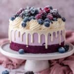 - Add Ganache: Pour the freshly made white chocolate-blackberry ganache evenly over the cake, spreading it gently to cover the surface.