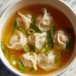 This homemade Wonton Soup recipe features tender pork-filled wontons simmered in a savory chicken broth with fresh bok choy and green onion garnish. Perfectly balanced with ginger, garlic, and sesame oil, this comforting Chinese classic is easy to prepare from scratch and ideal for a warming meal.